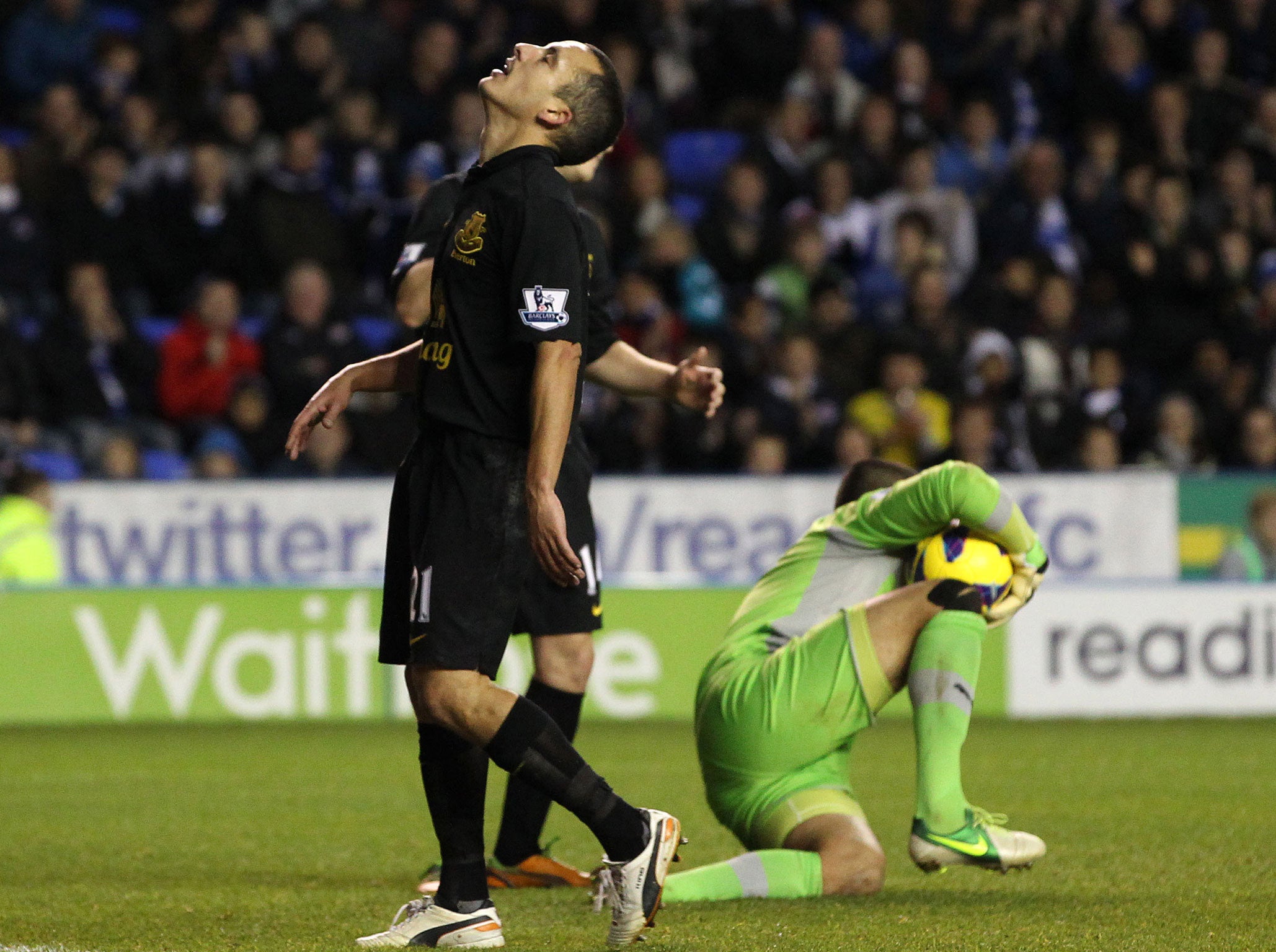 Everton had started at pace. Adam Federici, the home goalkeeper, had to make a smart save from Phil Jagielka’s close-range effort, with Nikica Jelavic volleying over as the ball ran loose. The pressure mounted and, with Reading committing defensive suicide in their own area, the dam broke easily. Time and again defenders had the opportunity to clear to safety; time and again they squandered the chance. Marouane Fellaini’s huge presence caused further problems and Steven Naismith tucked away the loose ball via Federici’s diving body.