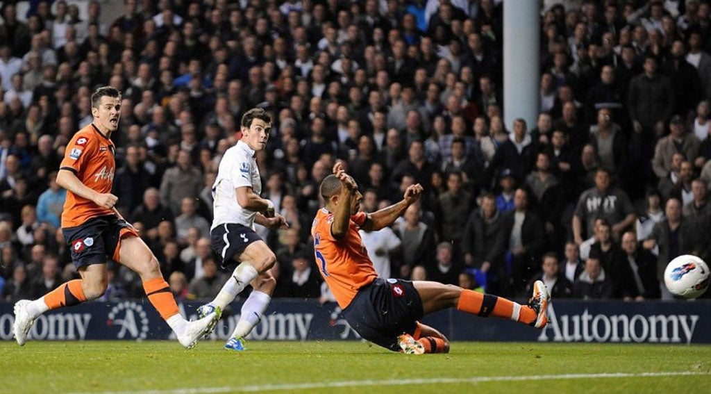 From two goals down at half-time, and having made all their substitutions by the time the second half kicked off, Warnock's side did manage to rescue some dignity from the game. "I thought we were fabulous second half," he said. "At half-time it would have been easy to look at the game and think: 'How many are Spurs going to score here?'." Redknapp's team should have been ahead when finally they did score on 20 minutes in a move that went across the pitch from right to left like a smartly executed try. Van der Vaart picked out Lennon in the middle and he allowed Bale to make his run before feeding the ball left to the winger. He drilled the ball past Kenny.