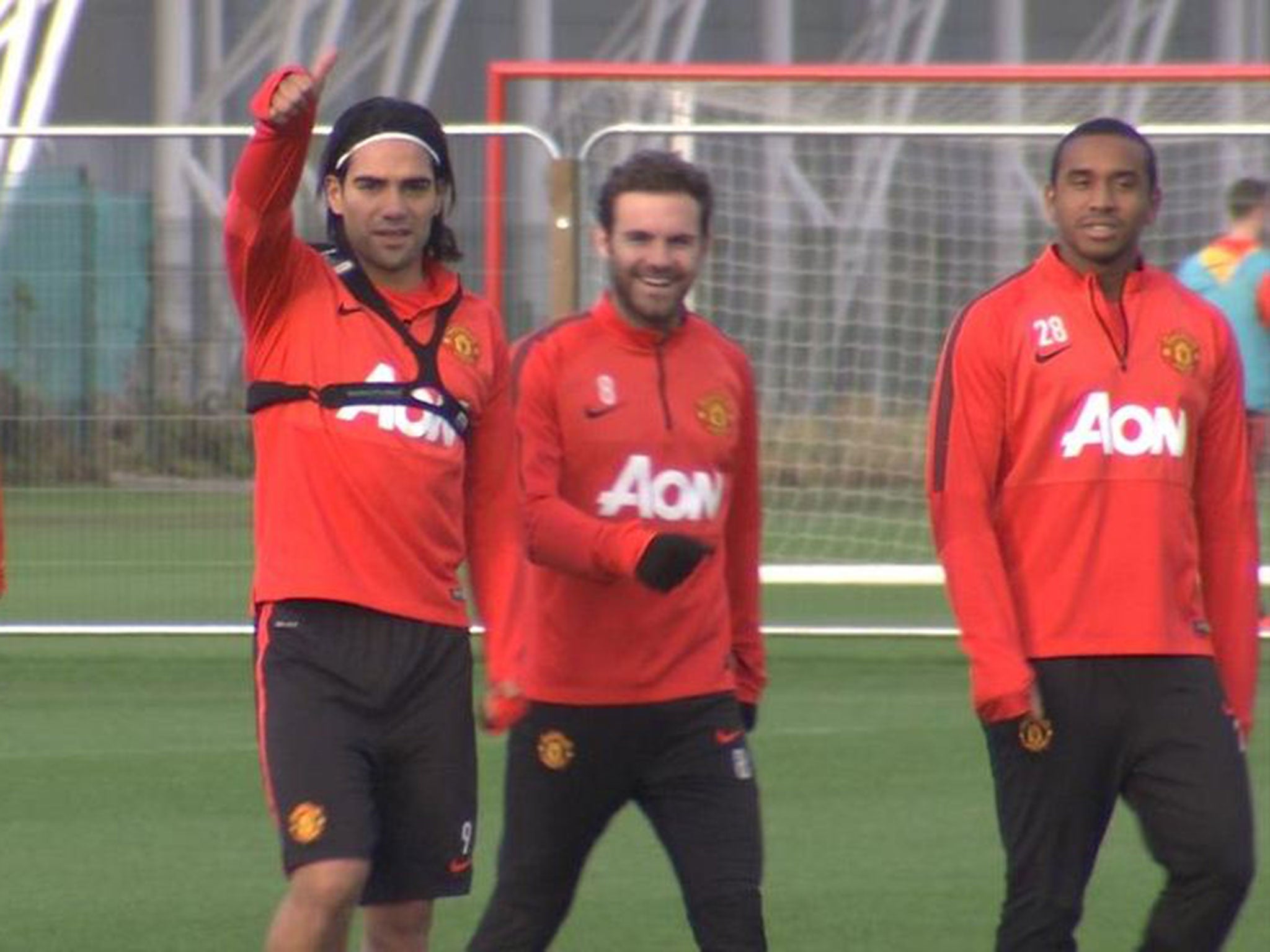 Manchester United striker Radamel Falcao returned to full training on Sunday afternoon after battling a calf injury for the past month.