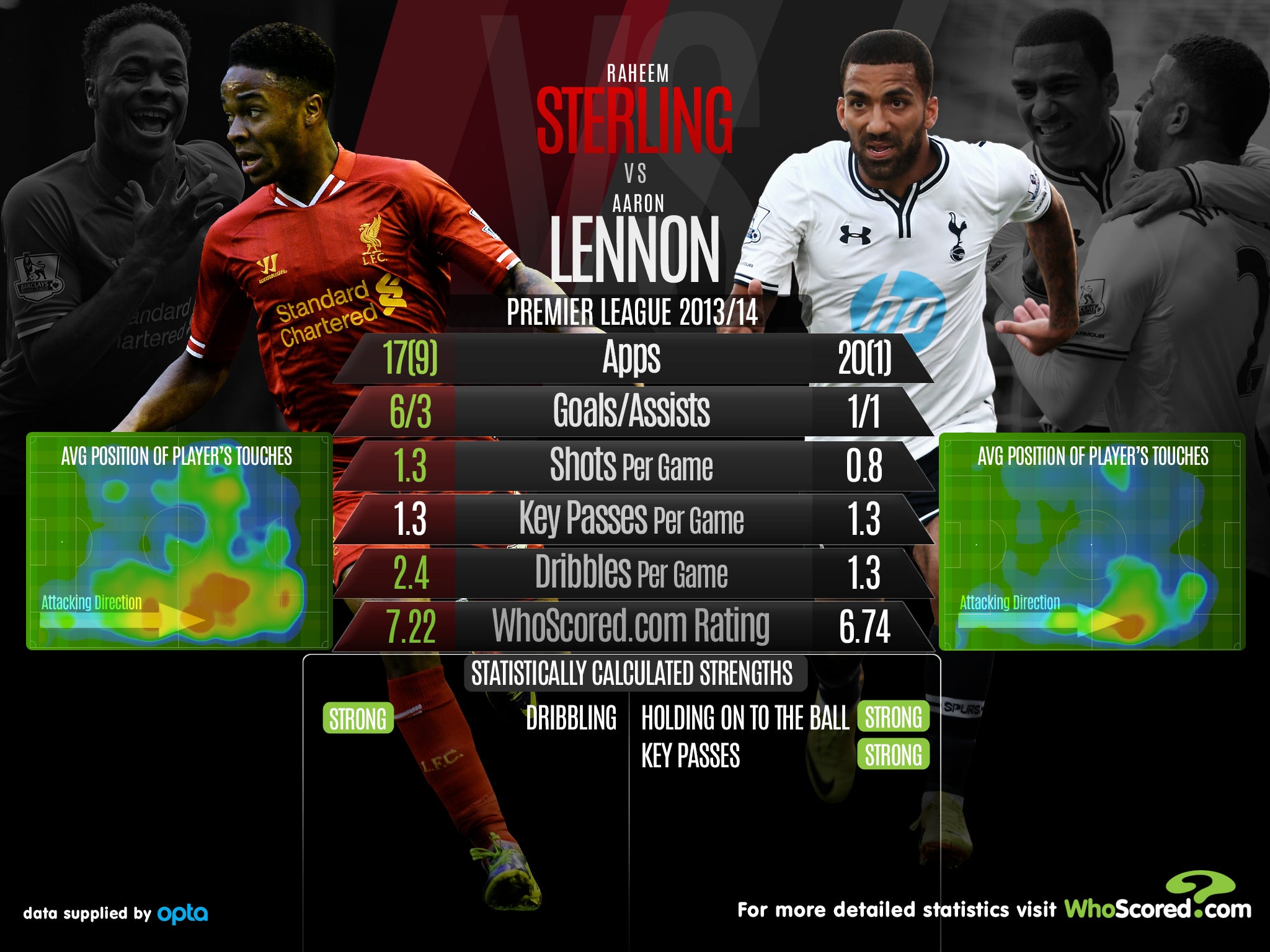 Ahead of this weekend's Premier League meeting, between Liverpool and Tottenham Hotspur, see how the sides' players Raheem Sterling and Aaron Lennon compare.