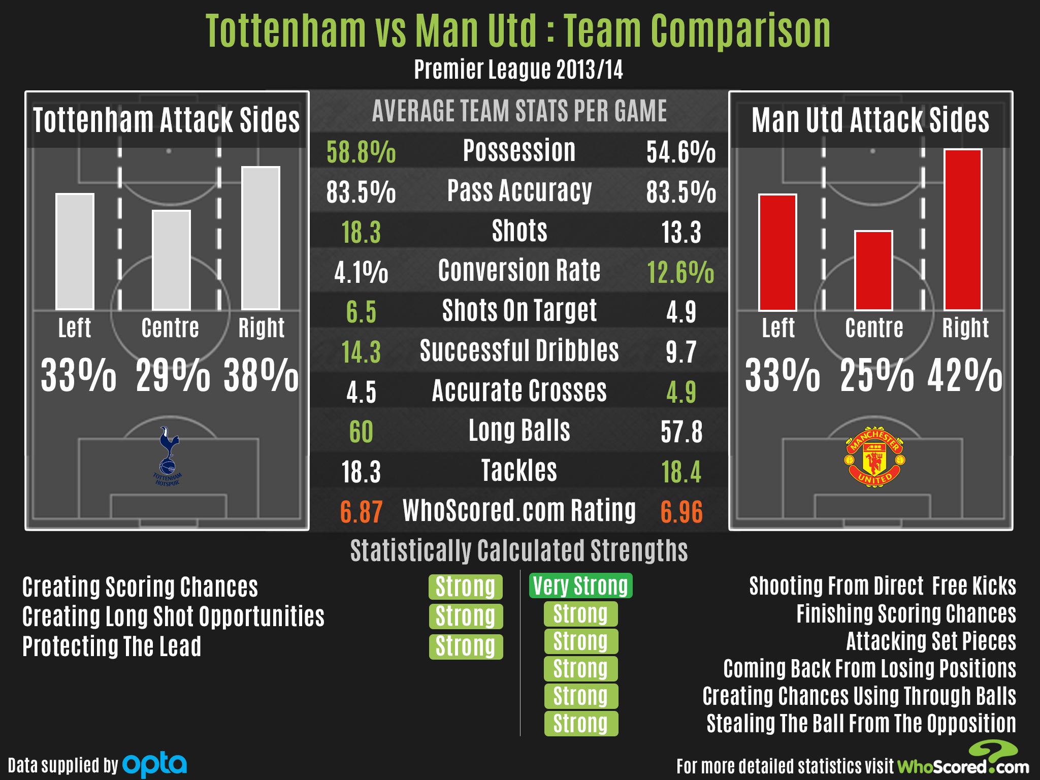 Your support makes all the difference. Read more Ahead of this weekend's Premier League meeting, between Tottenham Hotspur and Manchester United, see how the sides compare on possession, pass accuracy, tactics and much more.