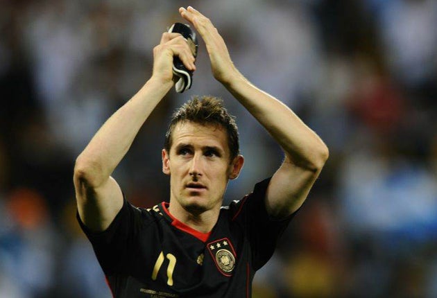 Klose's club, Bayern Munich, were all set to let the striker quit on a free transfer after he scored just six goals in 38 appearances for the Bundesliga side last term. But Klose's form in South Africa has left him just one goal short of Brazilian Ronaldo in the all-time World Cup scoring charts and as a result of his form, he may now look to move elsewhere in Europe.