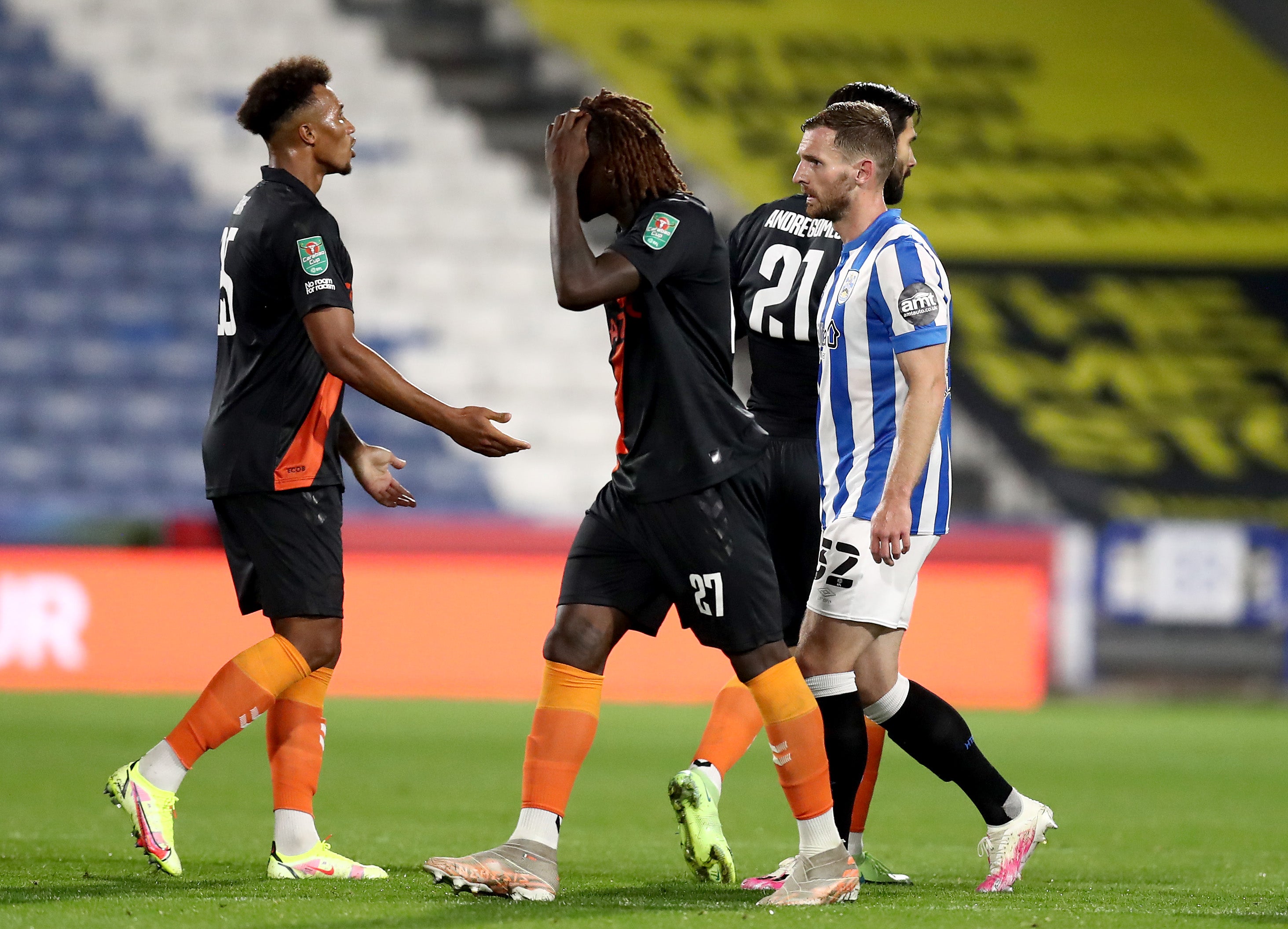 Indeed, he should have been on the scoresheet after rifling into the roof of the net in the first half but his frustrations boiled over on the hour, shoving Huddersfield’s Sorba Thomas twice to earn a straight red card.