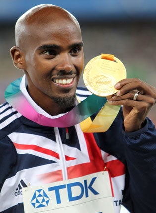 On that occasion, after lining up as the red-hot favourite, the gold was snatched from Farah's grasp by the fast-finishing Ethiopian Ibrahim Jeilan. This time the Briton resisted the late challenges of his rivals, crossing the line 0.28sec clear of America's Bernard Lagat in 13min 23.36sec.