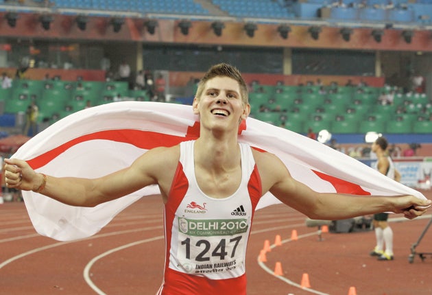 Lawrence Clarke is sitting in the foyer of the Ambassador Hotel in Delhi, watching a succession of English gold-medal winners file past for a final-day celebration at the Team England Lodge. Clarke himself has been a medal winner at the XIX Commonwealth Games, although he has not brought with him the bronze he claimed in a famous English 1-2-3 in the 110m hurdles final.