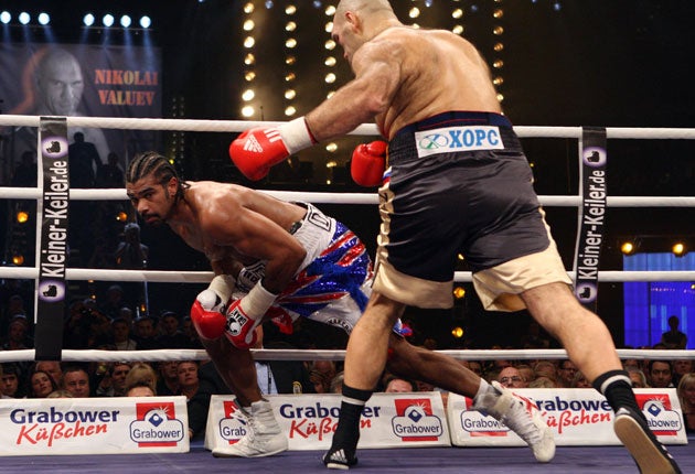 Long after the lights had been dismantled and 8,000 fans had wandered off into the wet night, Don King, who has a slice of Valuev's fallen stock, was still clutching his trademark flags and shaking his head and muttering: "Oh baby, oh baby, David will be king, yes, he will be king!"