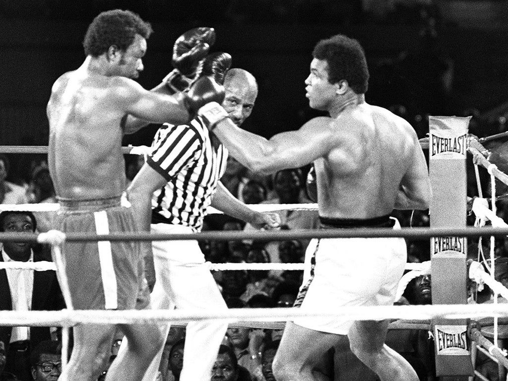 Ali's eighth-round knockout of another ogre, fellow Olympic champion George Foreman, in the "Rumble in the Jungle" in Kinshasa, Zaire, remains one of the most magical episodes in sport. "Oh my God, he's won the world title back at 32," declared the BBC commentator Harry Carpenter as Ali's right hand sent Foreman corkscrewing to the floor, with an 80,000 crowd chanting "Ali bombaye" (Ali kill him). All through the fight Ali employed his "rope-a-dope", leaning back into the ropes that were purposely slackened by Dundee to absorb Foreman's thunderous body blows. "That your best shot, George?" he challenged a befuddled Foreman, who Dundee correctly predicted would "blow up like an old bull elephant". As he was counted out at around 3.30am the heavens opened and the ringside became a raging torrent. Ali had been re-born as dawn broke over Africa, a renaissance that was commemorated in the award-winning film When We Were Kings while Norman Mailer wrote a book about it simply called The Fight.