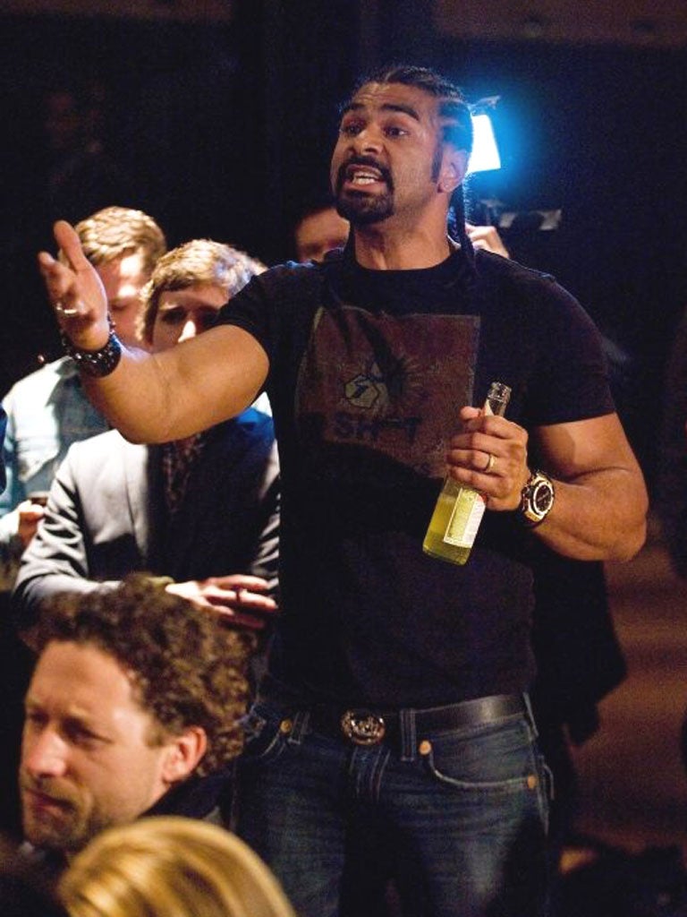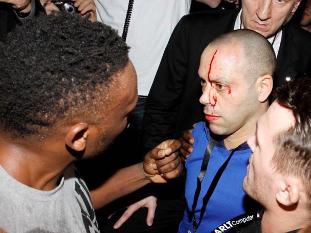They came face to face, it was heavily filmed and most of what was said was heard perfectly. Chisora promised to slap Haye twice, hands were raised and voices blurred as it all went horribly wrong. There are also shocking pictures of both boxers holding bottles as the aggro started and as it ended, but lurid claims that Haye had "glassed" Chisora are false. They were simply dehydrated, nothing sinister, and that is why they had bottles in their hands.