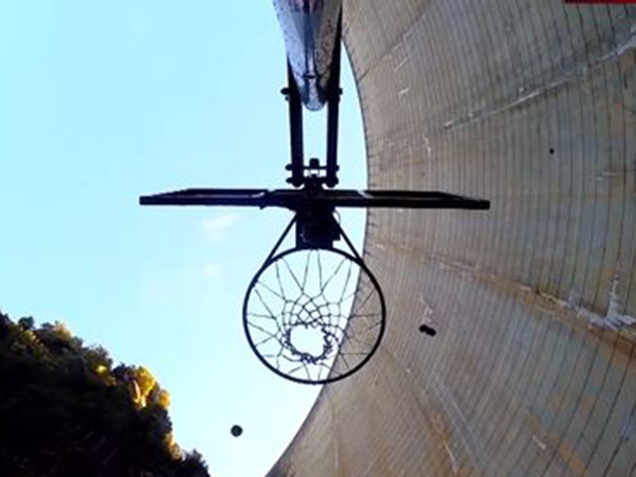 Team member, Brett Stanford, already held the Guinness World Record for longest basketball shot after hitting the back of the net from the EuroMast tower in the Netherlands at 91m in 2013.