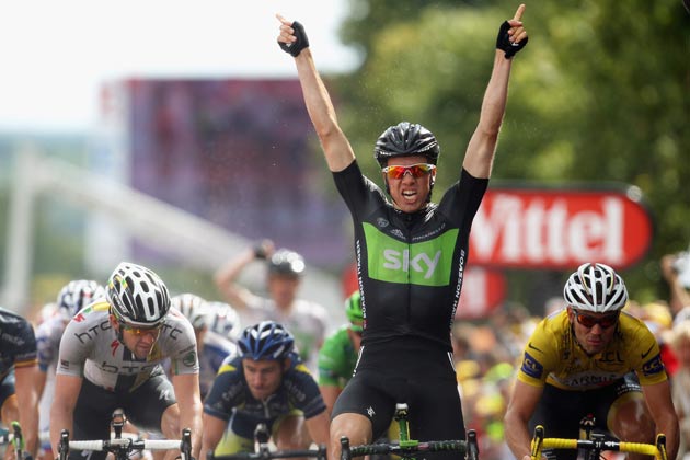 Edvald Boasson Hagen today claimed Team Sky's first Tour de France stage success in torrential rain in Normandy.