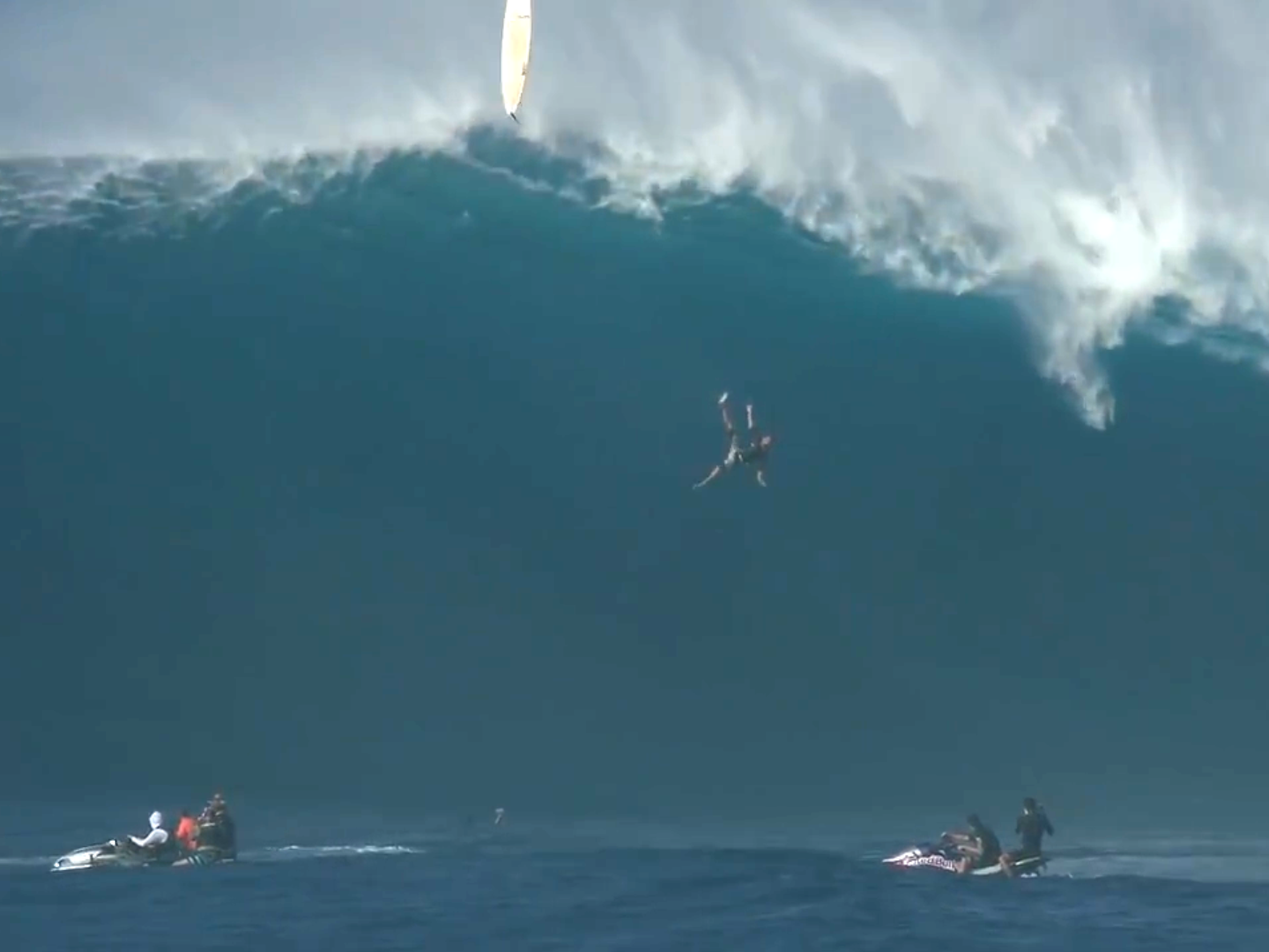 Tom Dosland was competing at the Jaws contest in Pe'ahi Hawaii before finding himself freefalling off an enormous wave.
