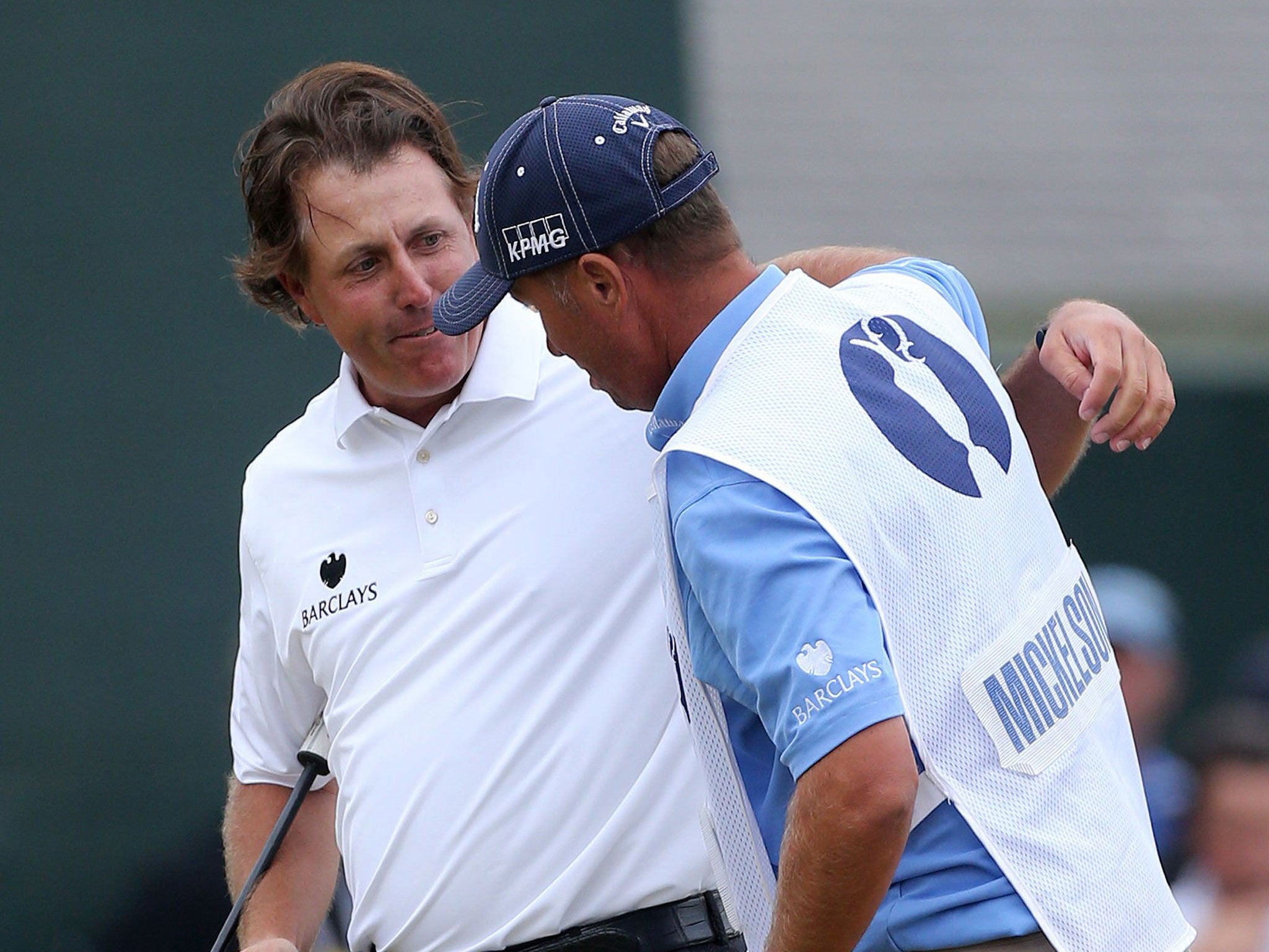The vogue these days it to speak about performance in the first person plural. In Mickelson’s case the “we” is very much justified since it refers largely to his caddie of 20 years, Jim – Bones – Mackay. Clearly clan Mickelson: wife, Amy, and the three children that witnessed his win, and coach Butch Harmon are influential, but the material business of hitting balls is the domain of Mickelson and his faithful on-course guide.