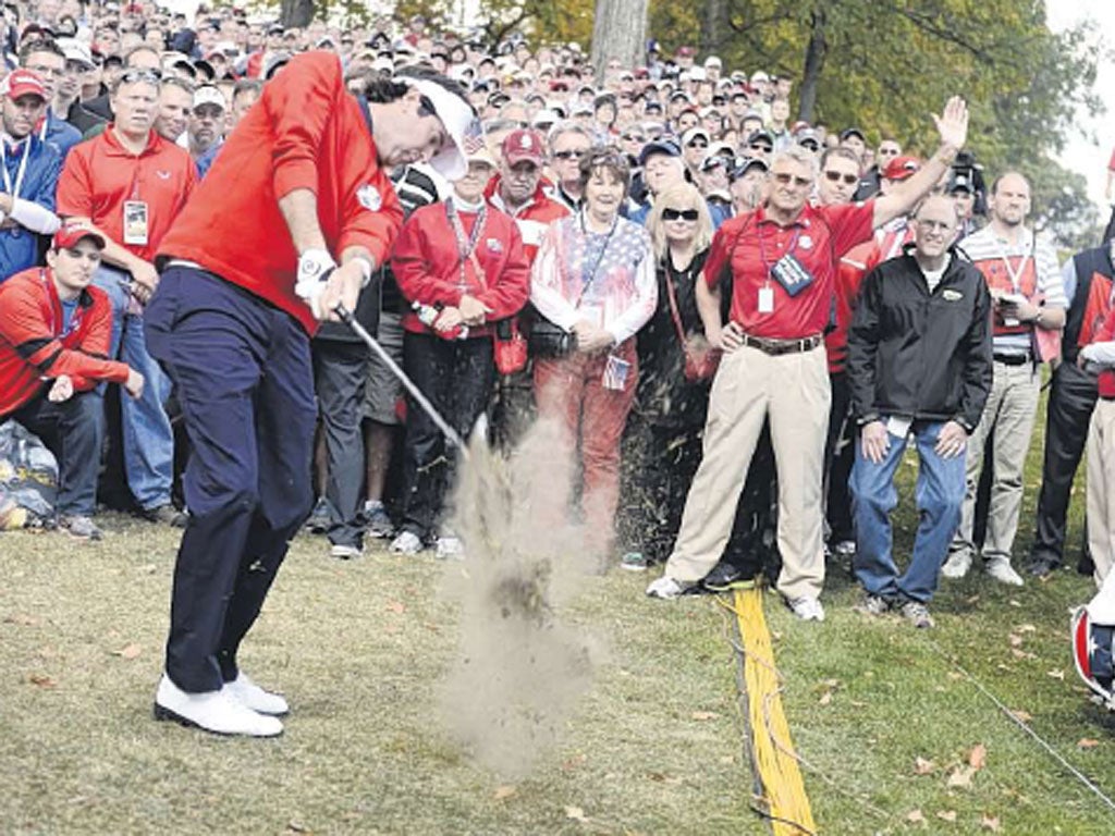 Players and fans were channelling Seve Ballesteros, too. In a tribute to the godfather of European golf and Ryder Cup legend, the Europeans wore Seve's Sunday blue jumper and trousers with his silhouette on the sleeve of their white shirts. "One Ballesteros, there's only one Ballesteros," came the rallying cry from the Europeans. Outnumbered they may have been, but their football songs were dominating the deep-throated grunts of "U-S-A! U-S-A!"