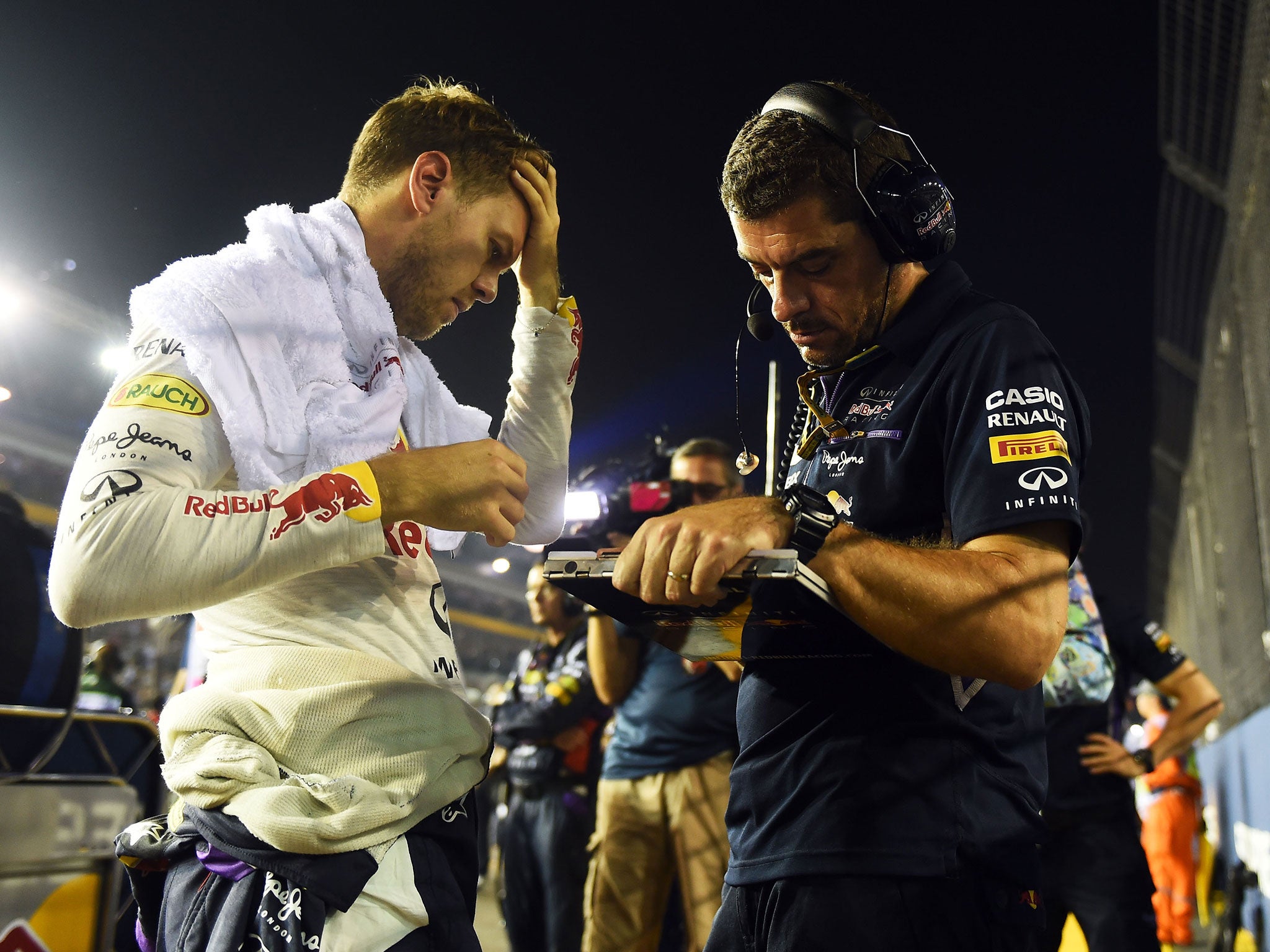 “I wasn’t quite sure what Lewis was doing, and it seemed like he couldn’t wait to get back into the lead,” Vettel said. “It was quite tight, but I saw he was there and had to back off. There was no point in fighting him as by then my tyres were no match for his.”