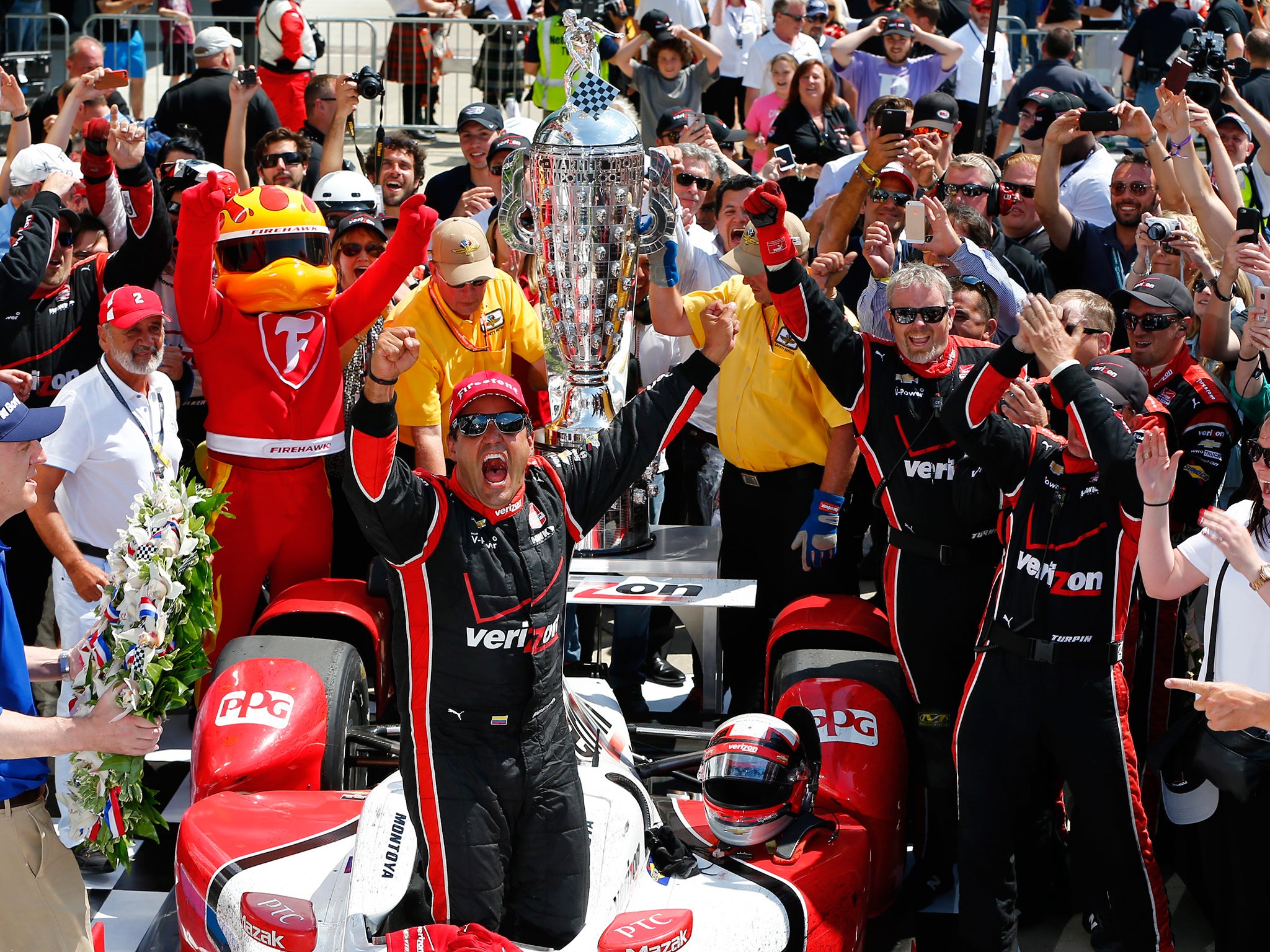 Juan Pablo Montoya showed just why he was once the dominating force in American open-wheel racing as he emerged from a thrilling three-way battle with Team Penske team-mate Will Power and Target Chip Ganassi’s Scott Dixon to take victory in the prestigious Indy 500.