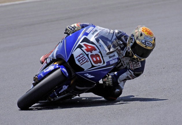 It is an inspiration that he has needed in a troubled debut year in motorcycle racing's premier category. After winning two 250cc world championships, Lorenzo became MotoGP's poster boy after qualifying on pole in his first three races this year, winning in Portugal and, briefly, leading the points table. But he fell in practice in China and fractured both ankles and since then the crashes have continued: the latest was in the US Grand Prix at Laguna Seca last Sunday. He is now wearing a cast on his left foot in order to allow three fractured bones to heal.