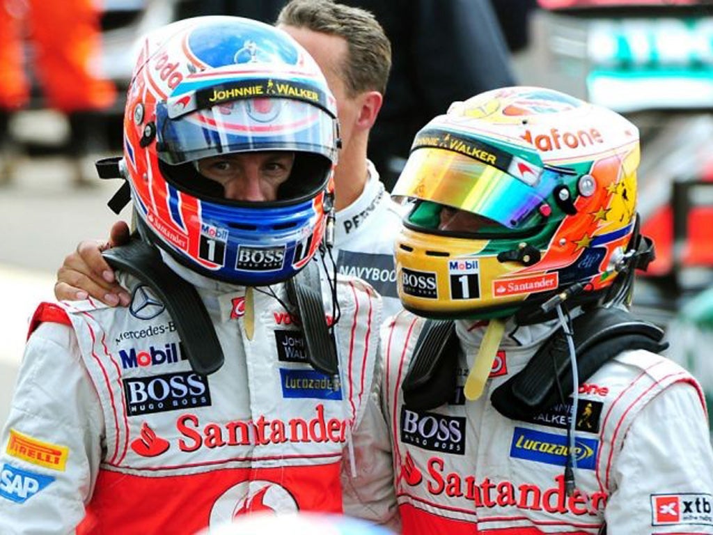 It worked a treat, returning Hamilton ahead of the Frenchman in 12th. For a few laps at least he tapped into some welcome speed, accounting Nico Rosberg just as he had Michael Schumacher at Copse earlier in the piece. The move dropped him on to the back of team-mate Button, and guess where he cut past him? Yes, a Copse hat-trick. It wouldn't last. Hamilton was straight on the radio informing the McLaren pit wall that Grosjean was way quicker than him.