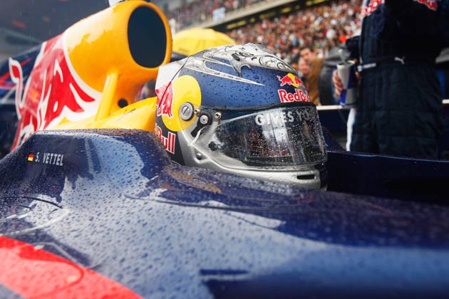 Heavy rain throughout the afternoon forced organisers to start the race behind the safety car but when it peeled off after eight laps the Red Bull duo showed superb pace to fend off the challenge of Brawn GP.