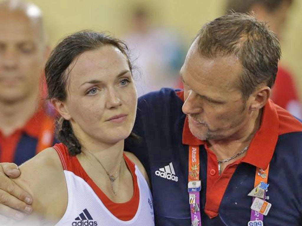 Victoria Pendleton is consoled after she and Jess Varnish miss out on a ride-off for Olympic gold in the Velodrome in agonising fashion, being relegated by officials for a takeover infringement. It was all the more disappointing because they had set a world record in the two-woman, two-lap event in qualifying.
