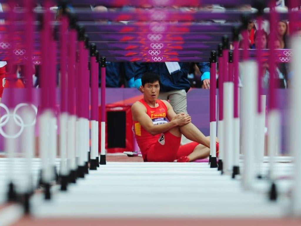 Chinese hurdler Liu Xiang fell and was injured at the first hurdle of his 110m heat, making this the second consecutive Olympics in which he has failed to finish (he also pulled up injured in Beijing, with the hopes of the home nation resting on his shoulders). He started to hobble off down the tunnel, but in a sudden act of defiance he returned to the track and hopped the rest of the race on his good leg, bypassing the hurdles except for the last, which he kissed.