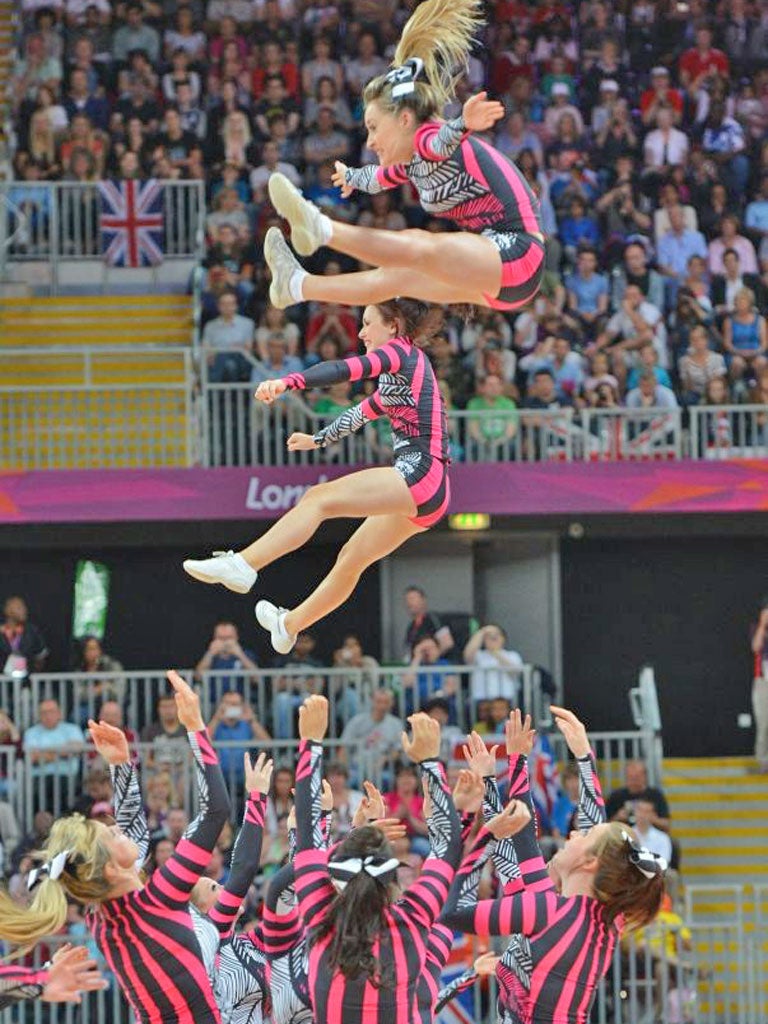 In the Olympic venues, you'll be treated to feats of physical accomplishment by the Ascension Eagles, based near Gallions Reach, south-east London. They've won more than 250 trophies and compete and regularly win at an international level. The British Cheerleading Association's company secretary, Collin Johnson, says cheerleading squads will be popping up at handball, basketball, volleyball and football matches over the next week.