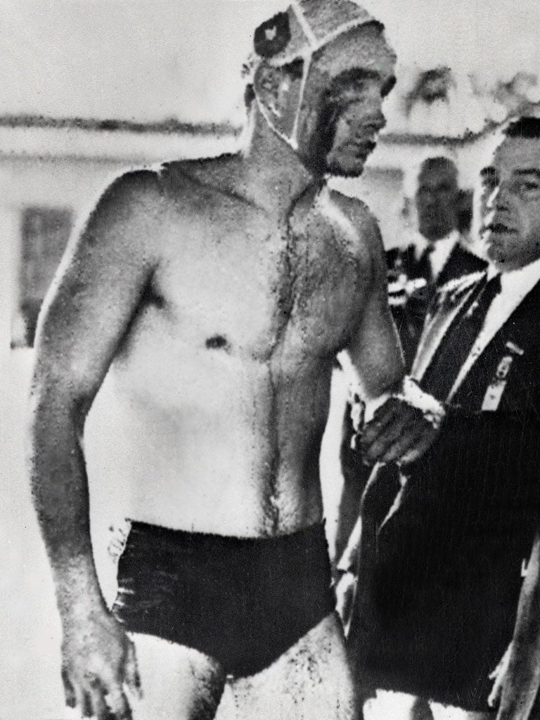 The respite brought by the whistle was an opportunity for the audience to draw breath. Neutrality offers no protection from the broiling feud. Mercifully the action, though often requiring the temporary exclusion of repeat offenders, did not breach the spirit of competition in the manner of the conflagration between the Soviet Union and Hungary in Melbourne 56 years ago. The Soviet invasion of Hungary three weeks before and the brutal repression that followed introduced a material dimension absent in this contest and led to a mass brawl between the teams. Police protection was required for those with Soviet connections in the crowd.