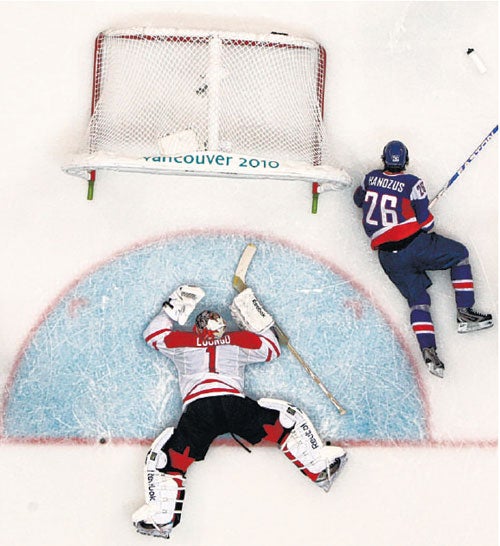 The heart-stopping end to the semi-final did not appear to be in the script as Canada roared out to a 3-0 lead on goals from Patrick Marleau, Brenden Morrow and Ryan Getzlaf. With Canada in control and less than 10 minutes to play the capacity crowd at Canada Hockey Place had been in party mode and were already chanting "We want USA. We want USA."
