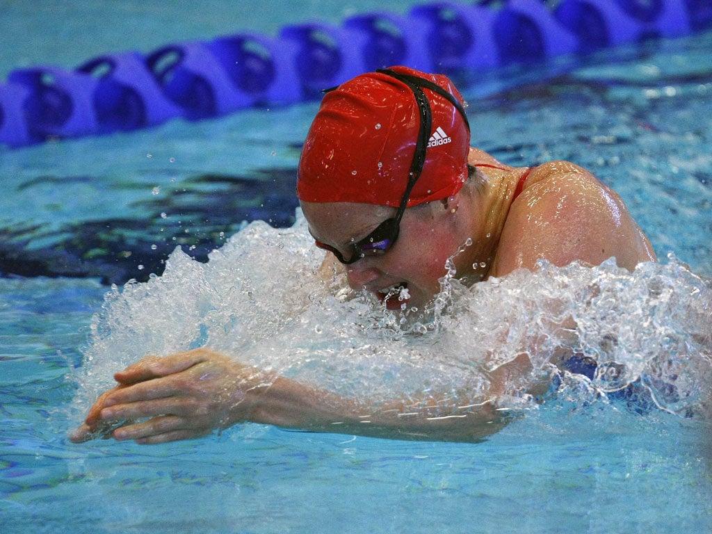 The contrast with what lies ahead could not be more acute. Dotted around the seats that run the length of the pool are the pick of young swimmers from local clubs. They watch in awed silence as Rebecca Adlington, Fran Halsall, Hannah Miley and co plough up and down.On the scoreboard at one end a succession of messages scroll up the screen. "Hang around with positive personalities not 'energy vampires' "… "Swim your own race, not the opponent's"… "Don't overhype the Games, it's just another swim meet."