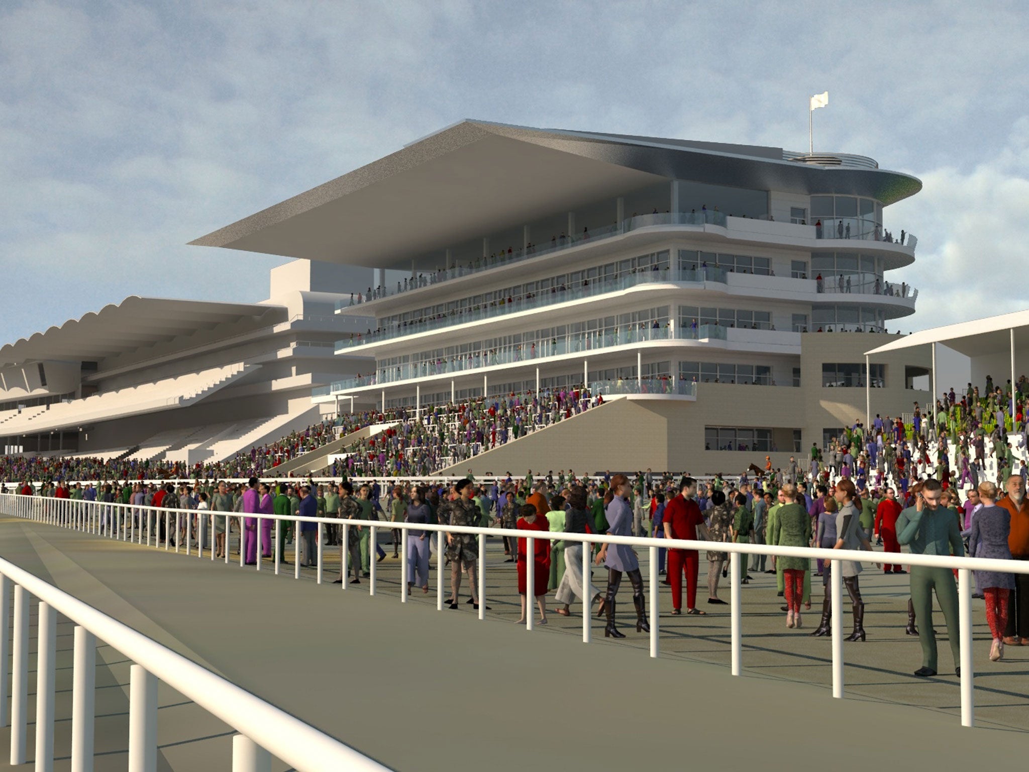 No sensible person, equally, would indulge the repeated use yesterday of the word "iconic" to describe the building that will replace it. It is not as if the panel of officials announcing the plans had selected a design with the remotest pretence to boldness. An "iconic" building might have made use of Cotswold stone, for instance, but that would have entailed an unpalatable combination of risk and expense. Instead, it presents to the track a terrace, some tiered glazing, and a shelf to keep the rain off – no more or less iconic than any of those other recent racecourse projects that abjured any adventurous flourish in the shape of the roof, say, or choice of materials. Those who head to Aintree next week will commend the use of wood, for instance, by the same owners; and at least Ascot dared to set everyone a challenge.