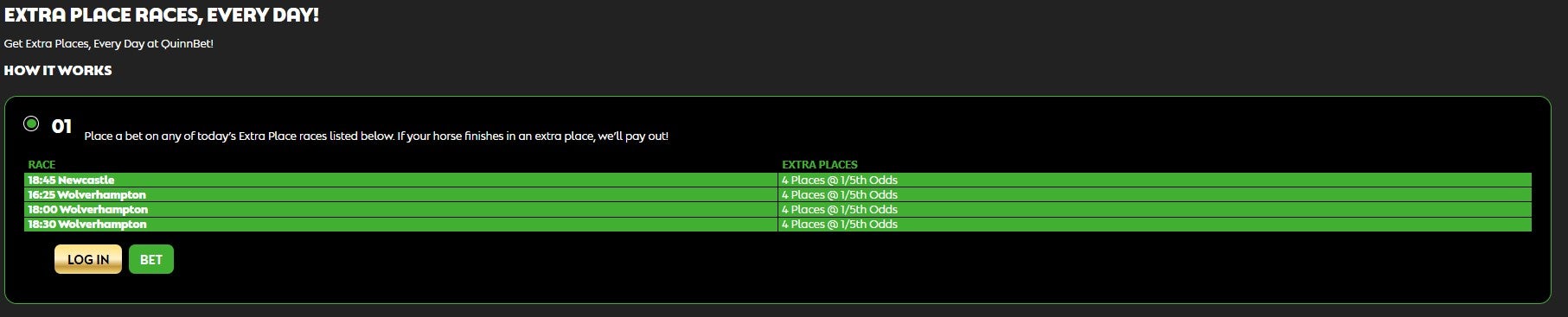 ✓ Money back offers apply to nearly every UK and Irish race | ✗ Lack of variation in offers and promotions |