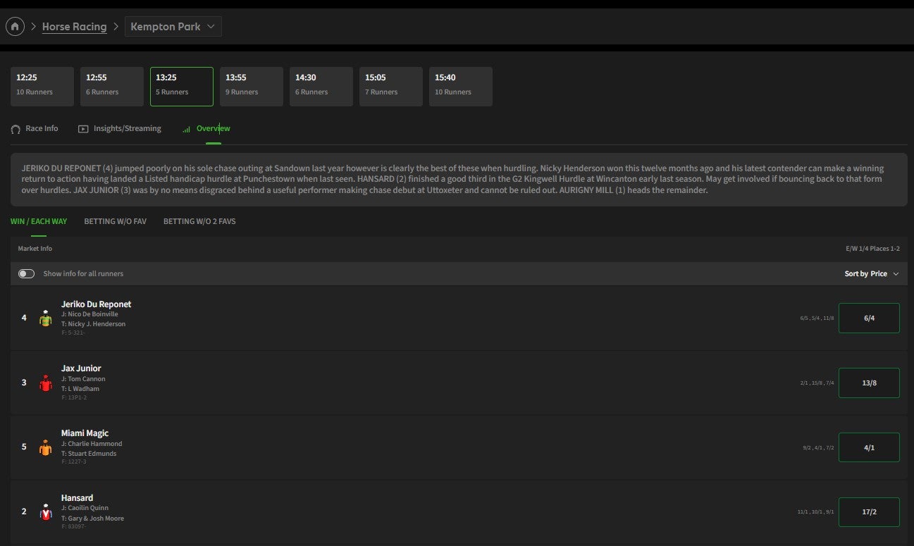 ✓ Decent selection of racing offers |
