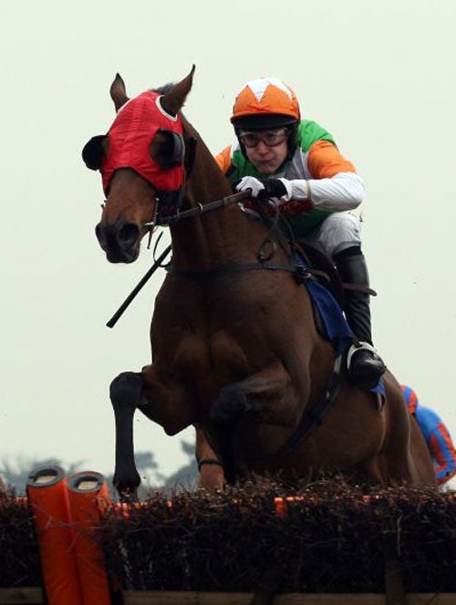 My Way De Solzen had seen off the novice Elusive Dream after the penultimate hurdle, and that looked that. But Lough Derg is apparently one of those who was hewn, not foaled. He was 15 lengths adrift off the home turn, five lengths down at the last and, red-blinkered head as determinedly down as the tiring My Way De Solzen's was up and wavering, two lengths ahead at the line.