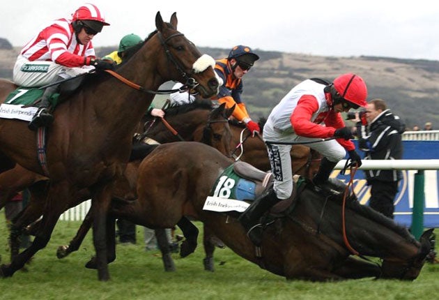Quevega, always travelling sweetly for Ruby Walsh – who was fortunate to escape unscathed from Tatenen's Arkle Chase tumble – powered up the hill 14 lengths clear of United. "Last year she was just behind Hurricane Fly in France," reasoned Mullins, "and he'd have been 1-4 to win in this class."