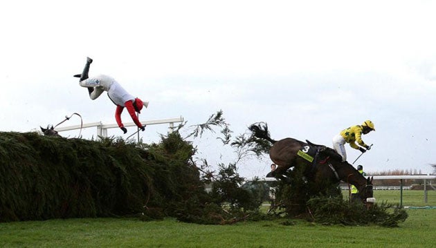 Hughes Jnr has just finished a brilliant season on the Flat, finishing second in the championship, but has always loved jump racing and rode a hurdler for his father later on the card. Sadly, he was tailed off when pulling up. As he might well tell Thomas, life is a lot easier for jockeys when they don't put great big fences in the way.