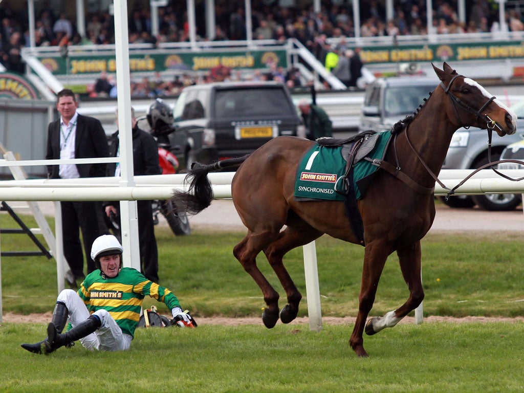 Synchronised, the joint favourite, was one of two mounts to die in the Grand National yesterday, prompting a fresh round of demands from animal rights protesters for the steeplechase to be abolished.