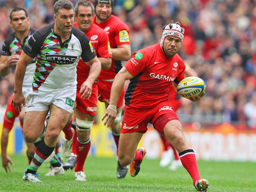 When Brits talks of freedom, he speaks as he plays: when he has the ball in his hands, a broken field in front of him, he is in his element. Two years ago, he was one of the crucial components in a late-season flowing of attacking rugby that surprised all those who had spent the previous weeks and months watching a risk-free, functional, methodical Saracens eke out victories over opponents who could not find a way of breaking down their structures. Prompted by a small but significant change to the refereeing of the tackle area, there was a sudden change. The spine of the Saracens side – an inventive full-back in Alex Goode, an Indian summer-warmed outside-half in Glen Jackson, a crafty scrum-half in Neil de Kock, a high-class footballing No 8 in Ernst Joubert and Brits – coalesced in a completely fresh approach that damned nearly brought them a first league title.