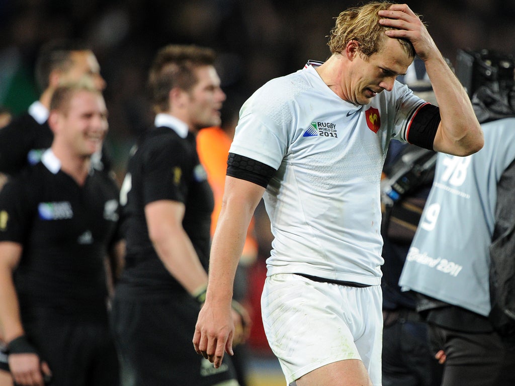 Had Yachvili been fit to kick at goal – the haematoma on his right thigh removed his long-range accuracy from the Tricolore armoury – France might well have won. To make matters more difficult still, they had to play most of the game without their first-choice stand-off, Morgan Parra, who was clattered by Richie McCaw after completing a fine low tackle on the rampaging Ma'a Nonu in centre field. McCaw certainly caught Parra in the face with his knee as he drove into the ruck on clear-out duty, and perhaps with his fist too. Purely accidental? Only the All Black skipper can say for sure.