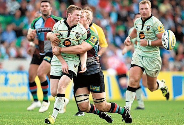 England have already half-committed themselves to a change in their midfield configuration following the latest orthopaedic calamity to befall their first-choice No 10 Toby Flood. Now, they are waiting nervously for news of their most threatening outside back. Northampton have been eerily quiet on the subject of Chris Ashton since the free-scoring wing limped off the field after putting two typically sharp tries past Bath at Franklin's Gardens six days ago, and there is some concern amongst the national hierarchy about his precise state of fitness.