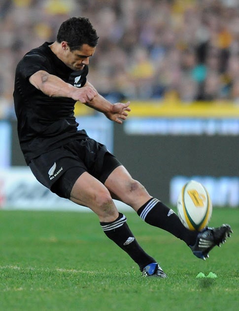 In the end, this crucial Tri-Nations match came down to a familiar name. Dan Carter was handed a 79th-minute penalty when the pressurised Australians failed to release the ball near their own line. From wide out, and 28 metres away from the posts, Carter calmly slotted the kick, his fourth of the match, and his comeback after a nine-month, injury-enforced absence from Test rugby had ended in triumph.