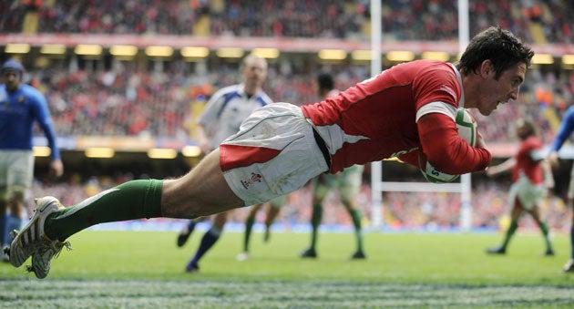 But this wasn't any side in the world – it was Italy. Plucky but oh so limited Italy. Despite Nick Mallett's men containing their hosts in the first half – restricting them to four Jones penalties – their ambition probably started and stopped with their demand to keep the roof open. Unfortunately for them, it did not rain. Well, nothing but Welsh attacks anyway.