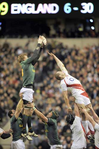 The Boks led 20-6 at half-time – the lock Bakkies Botha produced a try-saving tackle on Delon Armitage that summed up their magnificent defence – and it just got better for them, with Adrian Jacobs, Jaque Fourie and Bryan Habana adding further, exhilarating tries. By the end, England were unrecognisable as a team.