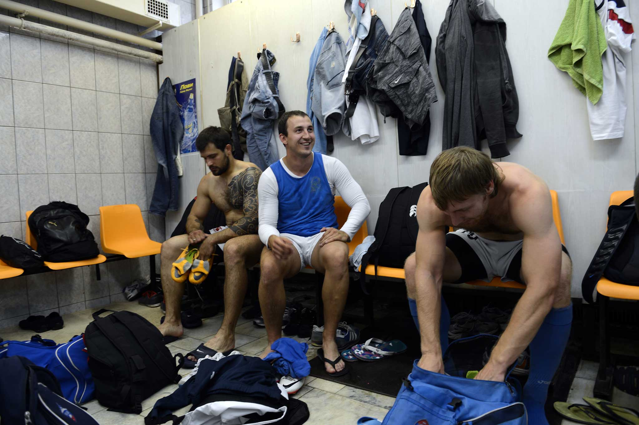Prior to the session, coach Sergei Lysko gives the team a dressing down in a Soviet-era gym room filled with weights and training equipment, over their performance in the last match. I have never before seen such a collection of tall, stacked, healthy looking Russian men in one place. As some of them casually do pull-ups on the equipment, Lysko warns them that their game has to be improved before they take a flight to Siberia a few days later to play against one of Russia's strongest teams in the city of Krasnoyarsk. The huge distances involved are just one of the difficulties involved in running the country's rugby league. "It's a five-hour flight to Krasnoyarsk from Moscow," says Thomas. "That's like Saracens going to play in New York."