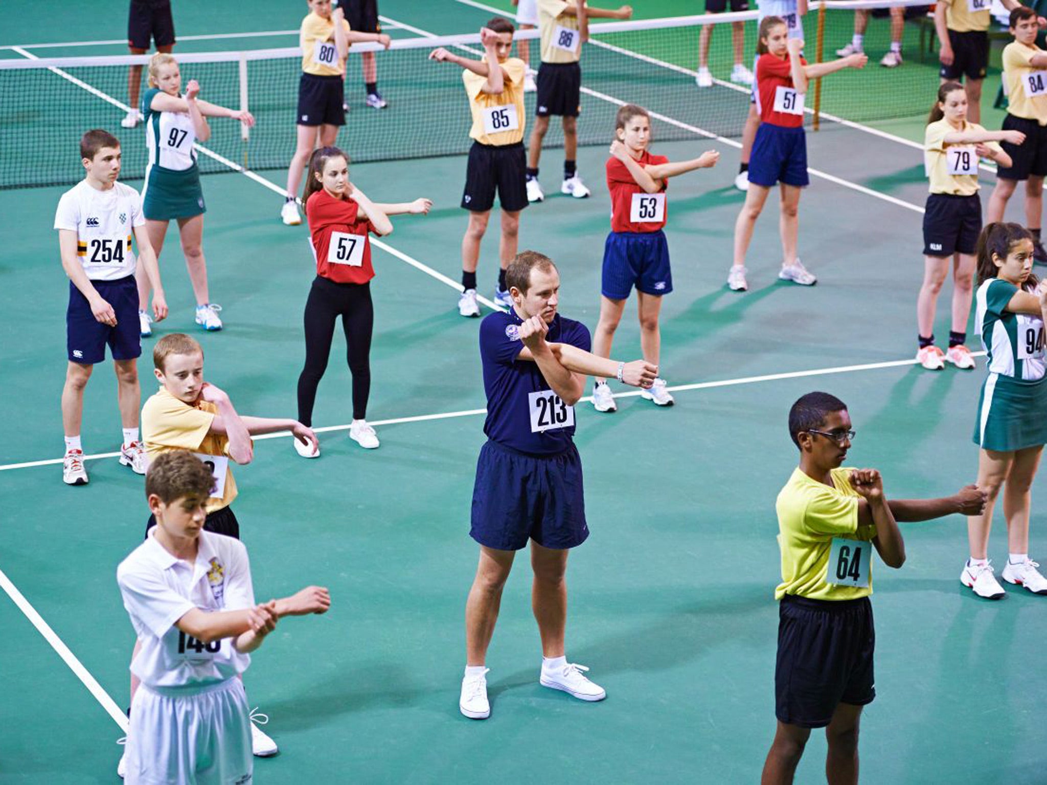 No wonder nobody smiles, there’s too much at stake. We begin with the warm-up. A female PE teacher doing her very best impression of the drill sergeant from Full Metal Jacket guides us through a seemingly never-ending medley of star jumps, squat thrusts, high knees and the like, the sort of activity no normal person ever does once their mum has stopped sewing their name into their shorts. But then, almost no one here apart from me has made it past such a point.