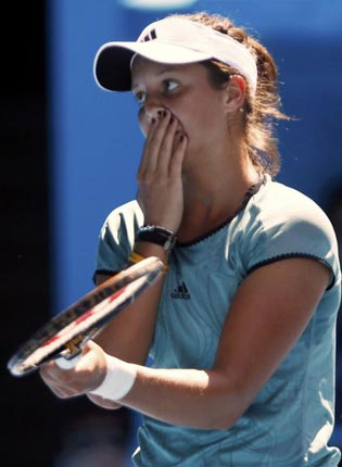In the first set, left-hander Robson was unable to cope with the tall Czech's groundstrokes, making a series of errors.