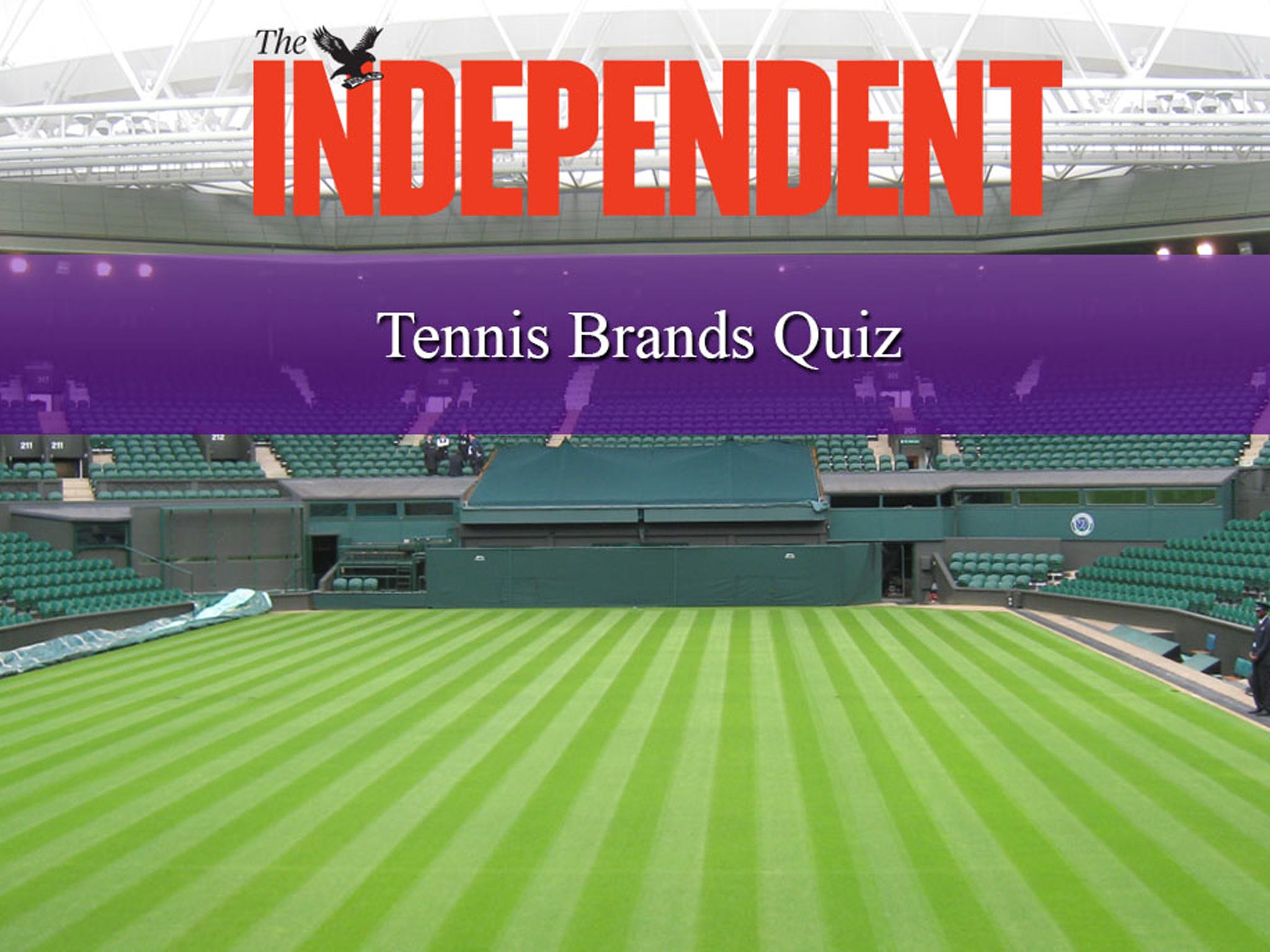 SportTennisThe Independent's Wimbledon 2013 tennis brands picture quizCan you identify these tennis brands that will be on show in SW19?Tuesday 25 June 2013 10:47 EDTBookmarkCommentsGo to commentsBookmark popoverRemoved from bookmarksClose popoverCan you identify these tennis brands that will be on show in SW19?Test your tennis knowledge by taking our quiz. Just CLICK HERE to take part and see if you can top the leaderboard.Join our commenting forumJoin thought-provoking conversations, follow other Independent readers and see their repliesComments