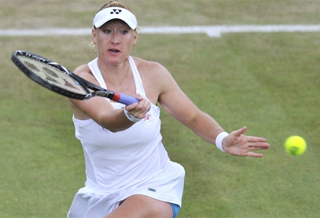 Instead she warrants praise for frequently giving the No 20 seed the run-around, and her ambition to break back into the world's top 50 – she arrived here as No 68, after a fleeting visit to No 49 last autumn – remains an entirely sober one. In aggression and athleticism, she has clearly flourished under Nino Severino, a coach with a background in karate and kick-boxing. Certainly some of the shots she played under pressure yesterday made it far too glib to attribute her capitulation to lack of backbone. She saved her first match point with a smeared forehand on to the far corner; and her second with a cobra of a first serve.