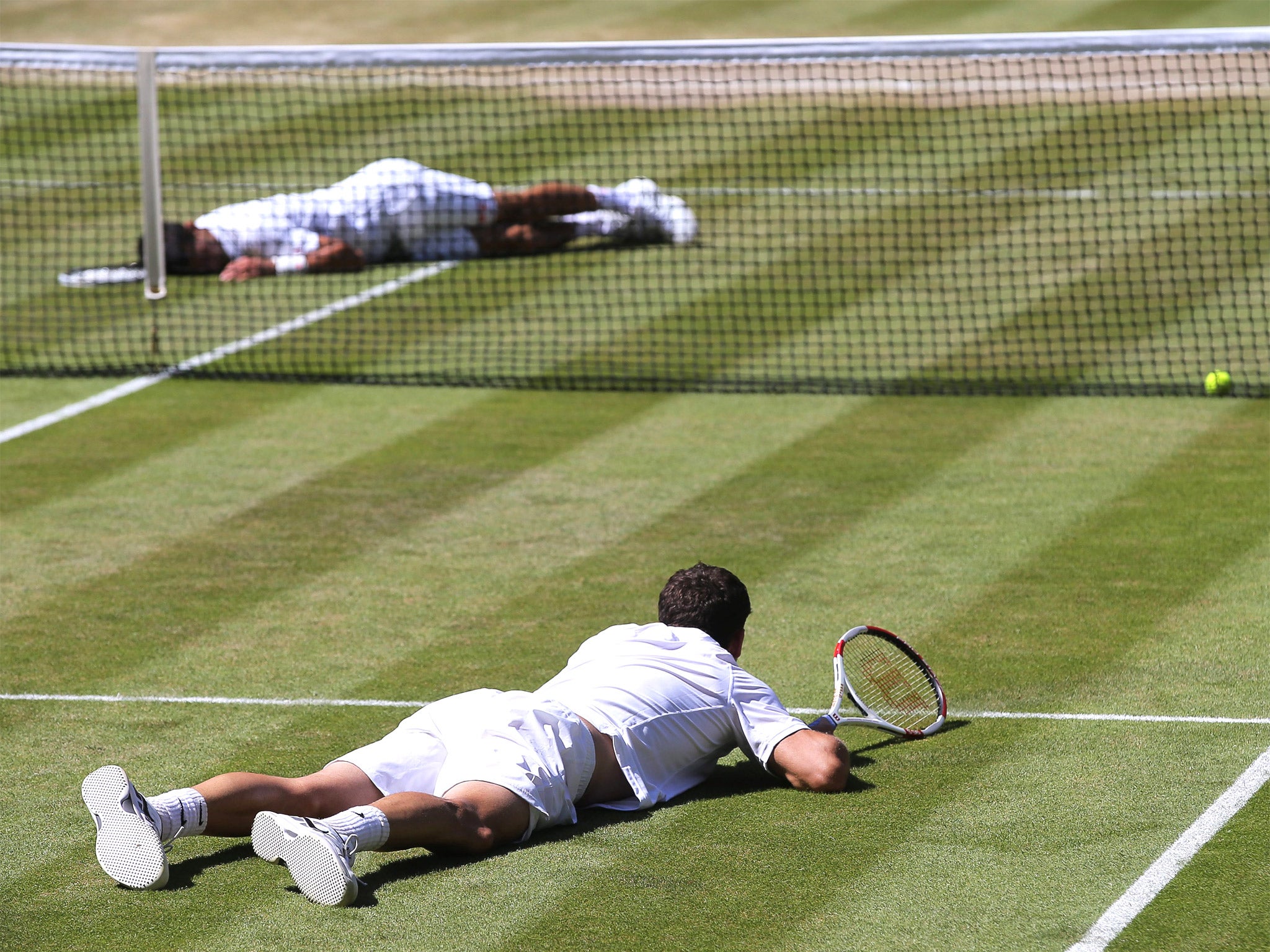 The sight of Novak Djokovic and Grigor Dimitrov both lying spreadeagled on either side of the net during their semi-final showed how players can throw themselves around a grass court in a way they would not contemplate on other surfaces.