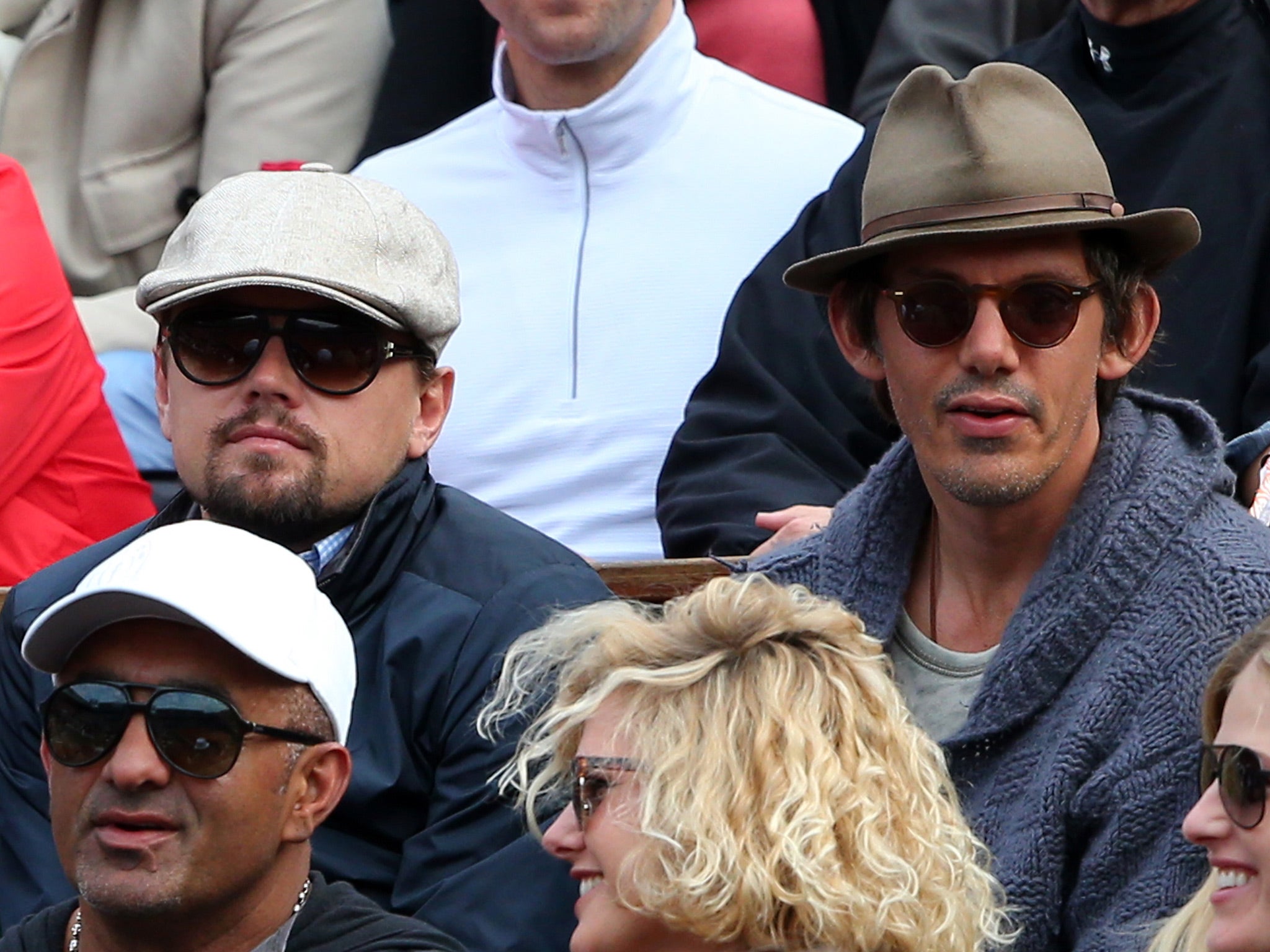 Just for your information, here's the real caption: Actors Leonardo DiCaprio and Lukas Haas watch Roger Federer of Switzerland compete at Roland Garros in the French Open (MARTIN BUREAU/AFP/Getty Images)