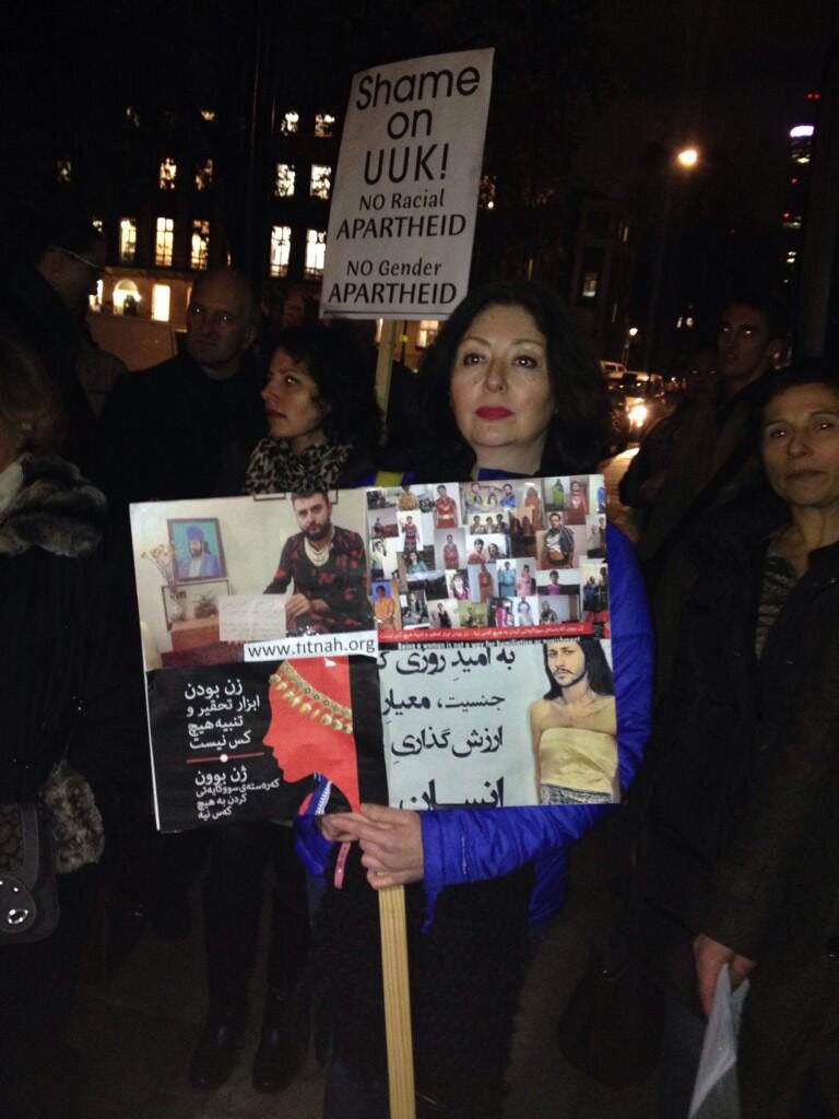 Over 100 demonstrators attended a rally last night in protest against “legimitisation of sex apartheid” by Universities UK (UUK).