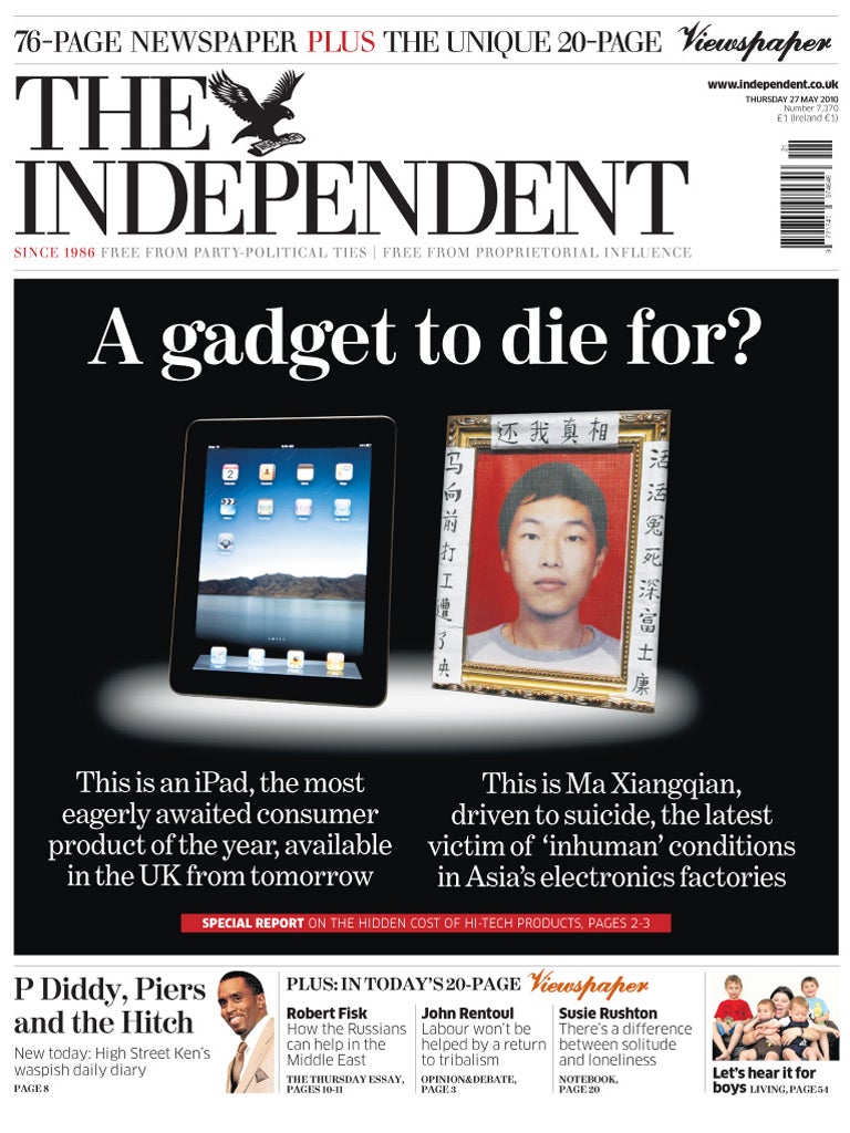 Yesterday, the organisation dismissed Apple's commitment to independent inspections as a publicity stunt. "We already know what the conditions are like in the factories," said Fan Yuan, a China Labour Watch activist. "What Apple needs to do right now is take action to solve the problems. This move is not really about solving the problems, but rather about Apple getting publicity and rebuilding its positive image."